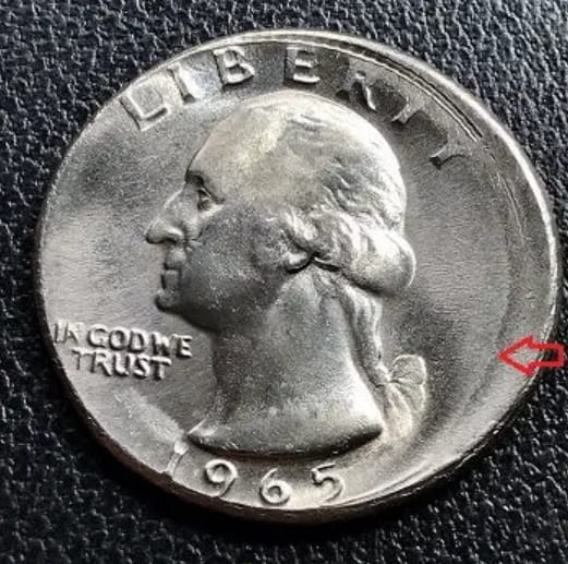 View Die Crack Error Picture1965 Quarter Clipped Planchet Error