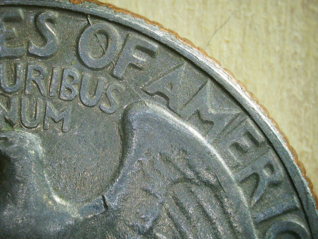 Die cracks manifest as raised lines on the coin's surface, created by cracks that develop in the die from metal fatigue during the striking process. As dies are used to strike thousands of coins, stress can cause the die face to crack, and these cracks fill with metal during striking, creating raised lines on subsequent coins. Die cracks can range from minor hairline cracks to major breaks or cuds.