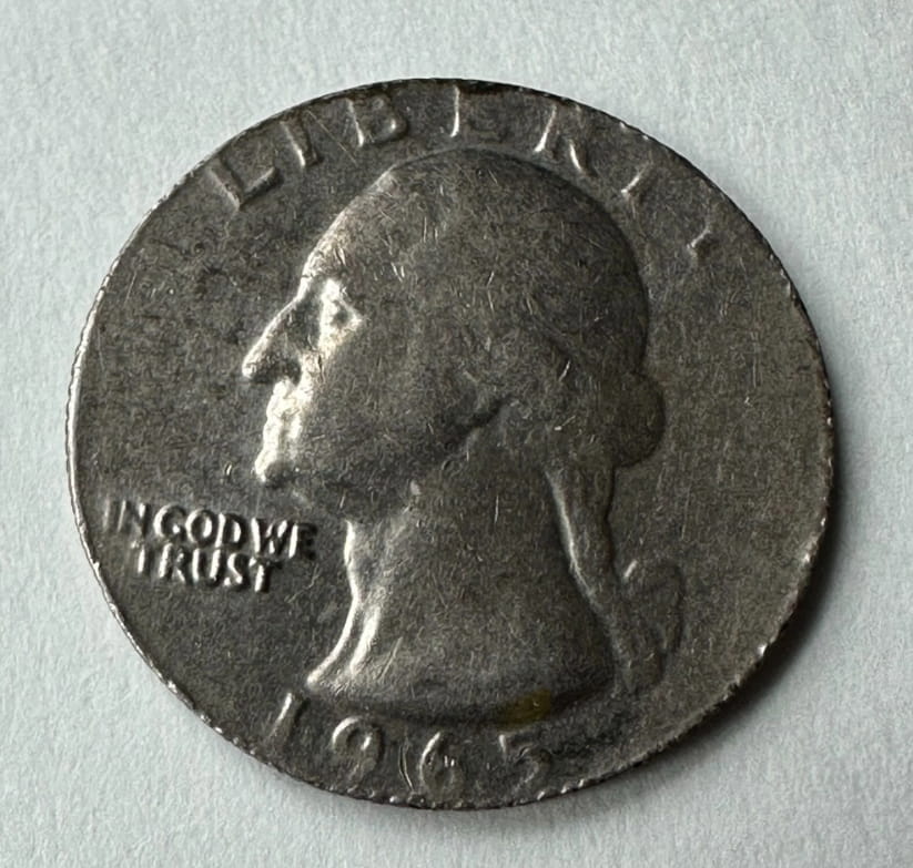 The most reliable method to determine if your 1965 quarter is silver or clad is to examine the edge. Silver quarters have a solid silver edge, while clad quarters show a copper core sandwiched between outer nickel layers, appearing as a copper stripe. Silver 1965 quarters weigh 6.25 grams compared to 5.67 grams for clad versions. You can also perform a sound test - silver quarters produce a clear, high-pitched ring when dropped, while clad quarters make a duller sound. Silver 1965 quarters are rare transitional errors worth $1,000 to $7,000 or more depending on condition. The CoinKnow App includes edge comparison tools and weight calculators to help you accurately determine your quarter's composition.